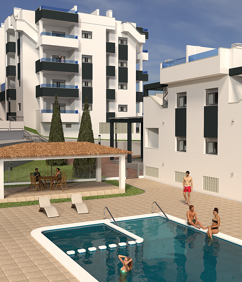 The residence will have a swimming pool with separate areas for adults and children, a garden around the pool with a pergola, toilets next to the pool, an open and covered social area with benches where you can enjoy eating with family and friends, and an enclosed gym and social surface. The fenced social area will have toilets and showers.