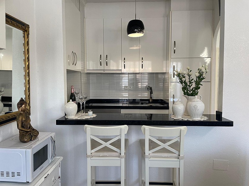 A warm welcome to this cozy apartment located in the popular La Rosaleda area within walking distance to the center, the beach and the promenade! This cozy and nice apartment has one bedroom, one bathroom, nicely renovated kitchen with open plan to the living room and 2 cozy balconies, one facing south and one facing north. Perfect for those of you who want both sun and shade. The home is sold fully furnished with appliances and air conditioning installed. Here you live in a perfect location within walking distance to all conceivable services, restaurants and only 550 meters to Playa Los Locos beach! You are welcome to contact us today for a viewing and reservation of this gem!