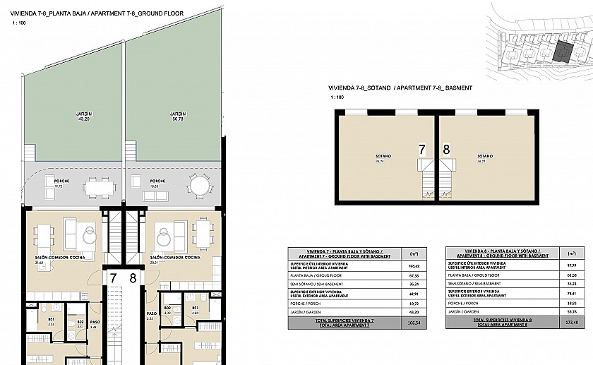 The ground floor apartments offer expansive gardens with incredible sea views, providing ample room for a private pool—a perfect setting for enjoying sunny days. Additionally, semi-basement options allow for the creation of extra bedrooms or versatile living spaces, tailored to your needs.