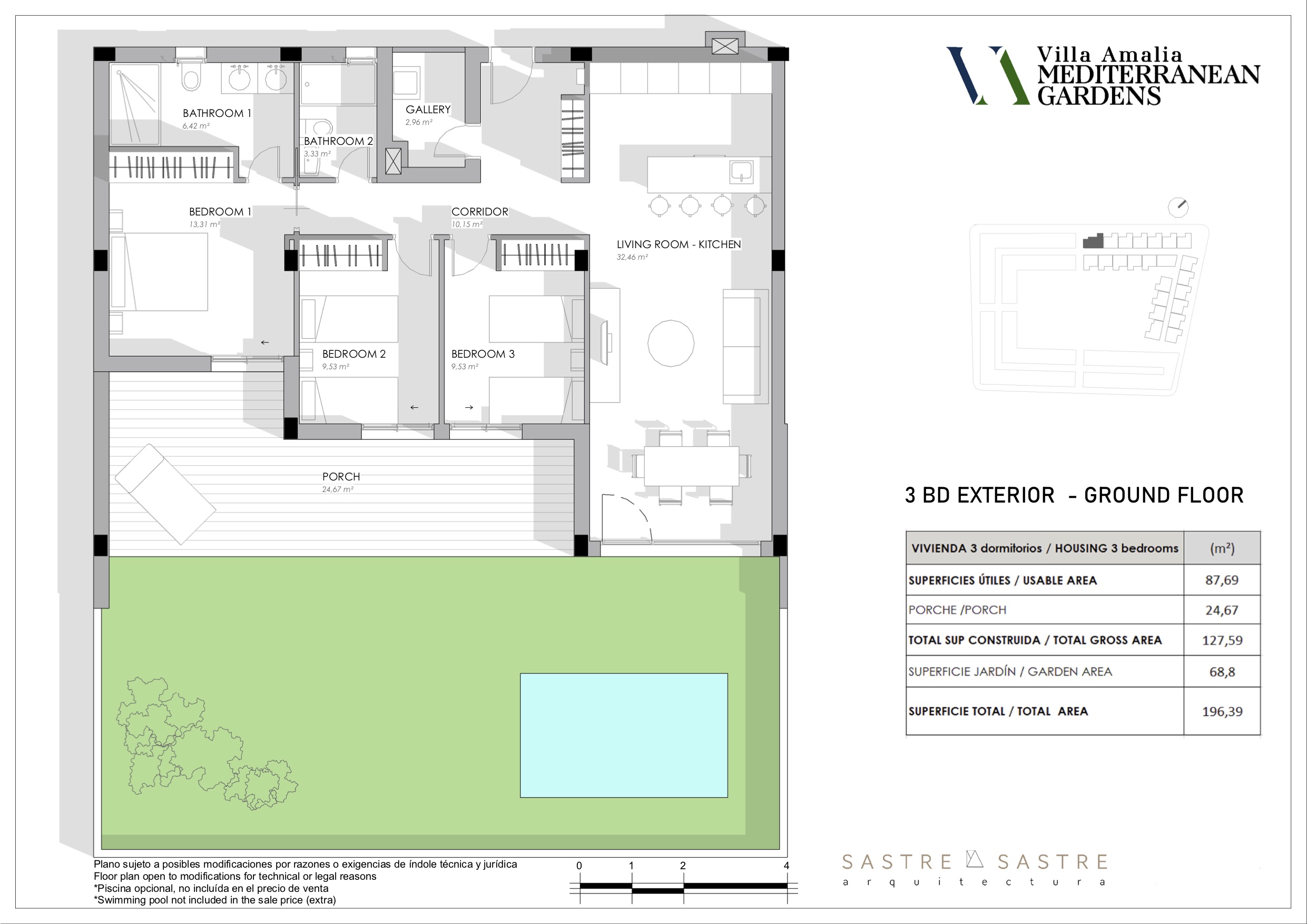 It offers groundfloors and penthouses with two or three bedrooms and with