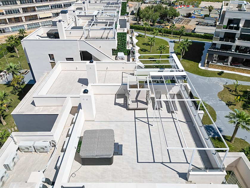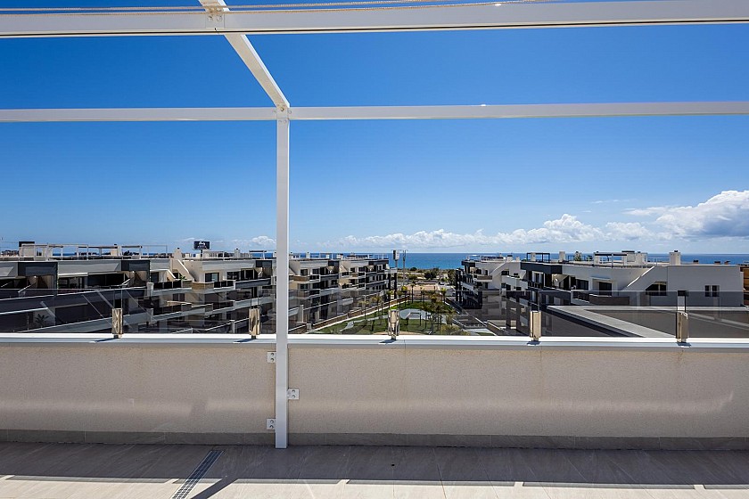 Lotus presenta un ático moderno con increíbles vistas al mar y una espaciosa terraza privada en la azotea en Orihuela Costa (Playa Flamenca), construido en 2024.