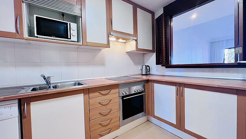 La vivienda dispone de zonas de estar amplias y luminosas, acceso directo a preciosas áreas ajardinadas y a una piscina comunitaria espectacular, ideal para disfrutar del clima mediterráneo durante todo el año.