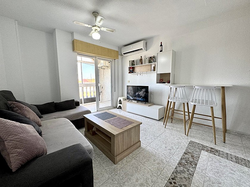 Vi presenterar en lägenhet med 3 sovrum och 2 badrum i hjärtat av Torrevieja, endast 450 meter till den populära stranden Playa del Cura. Belägen på 4:e våningen i en välskött byggnad med hiss (totalt 5 våningar), erbjuder denna rymliga bostad på 87 m² komfort, stil och bekvämlighet.