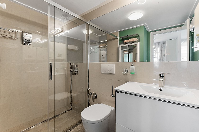 Lägenheten säljs delvis möblerad och med vitvaror. Den har integrerad luftkonditionering (varm/kall) i alla rum och elektrisk persienn i vardagsrummet.