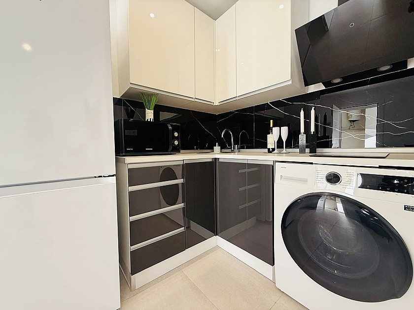 Fastigheten har luftkonditionering för året runt-klimatkontroll, moderna spotlights i varje rum och levereras fullständigt möblerad—redo att flytta in i omedelbart. Den generösa hörnterrassen är perfekt för er som önskar att äta ute och grilla, sola eller helt enkelt för att njuta av medelhavsklimatet. Även om fastigheten inte har egen pool finns det en närliggande restaurang med pool som erbjuder bekväm tillgång till bad och mat.