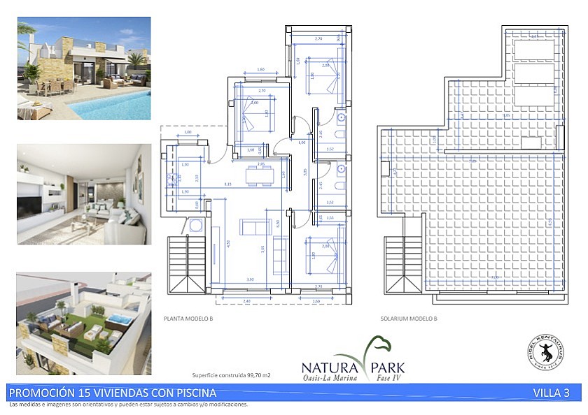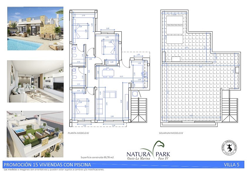 This beautiful exclusive area offers villas of 99.70 sq m and large generous plots between 246.17- 331.40 depending on the villa. All villas offer private pool, 1.5 kW solar panels, energy certificate A, electric blinds, furnished bathrooms and all villas have energy certificate A.