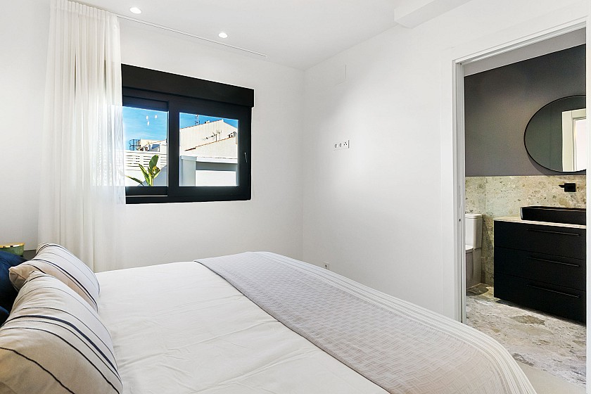 This newly renovated semi-detached villa of 104 m2 situated on a plot of 270 m2 with 3 modernly decorated bedrooms and 2 stylish bathrooms in the peaceful residential area of El Chaparral, Torrevieja, offers the perfect blend of elegance, comfort and efficiency. It is made of first-class materials and has three spacious bedrooms with fitted wardrobes and two stylish bathrooms, including a luxurious bathroom. Both bathrooms have stylish shower cubicles and underfloor heating. The heart of the house is a bright open-plan living room that is seamlessly connected to a fully equipped modern kitchen. This inviting space opens onto a covered terrace overlooking a private swimming pool with outdoor shower, perfect for enjoying the sunny southwest orientation.