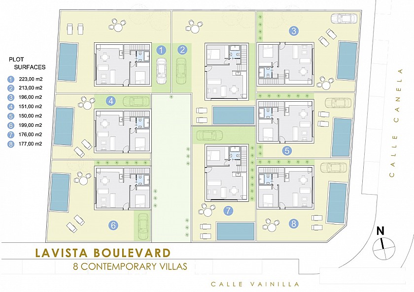Nuevo proyecto de villa en la zona de Los Dolses a tiro de piedra de Zenia Boulevard que consta de 8 villas con piscina privada.