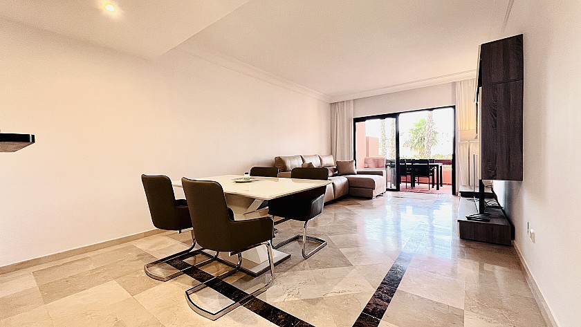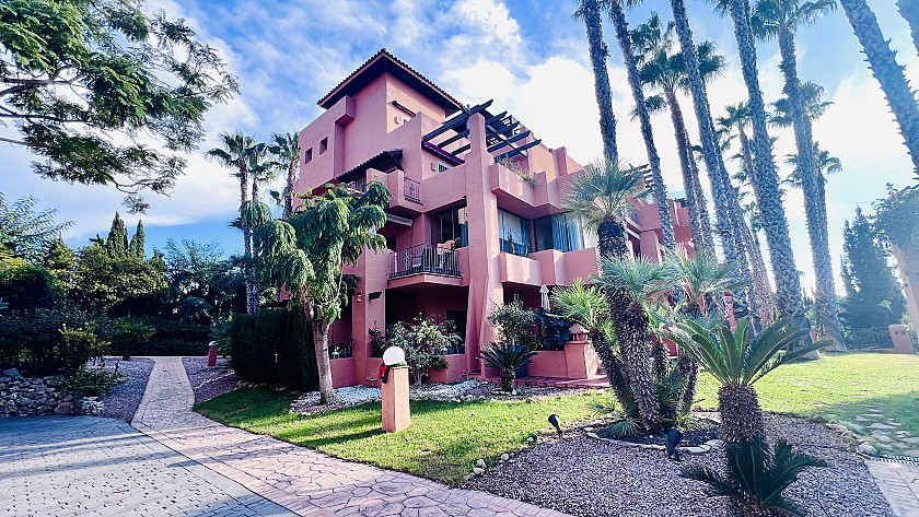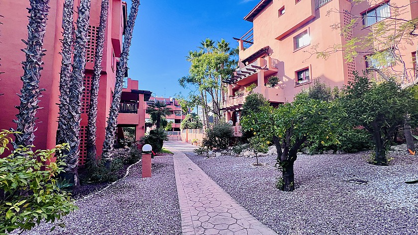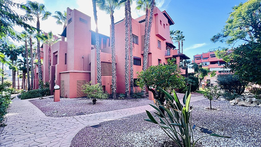 La vivienda dispone de zonas de estar amplias y luminosas, acceso directo a preciosas áreas ajardinadas y a una piscina comunitaria espectacular, ideal para disfrutar del clima mediterráneo durante todo el año.