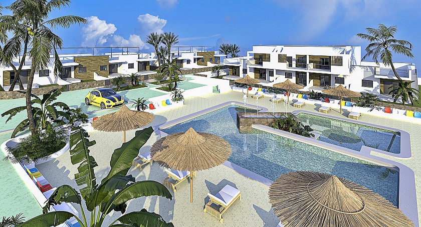 Nuestro primer lanzamiento incluye 24 apartamentos de 2 y 3 dormitorios, así como 12 encantadores bungalows de 2 dormitorios y 2 baños. Cada propiedad ha sido diseñada con un cuidado exquisito en los detalles y materiales de primera calidad, garantizando un ambiente de lujo y confort. Los amplios espacios interiores se complementan con grandes terrazas que invitan a disfrutar del clima mediterráneo.