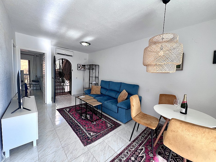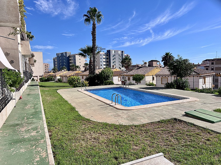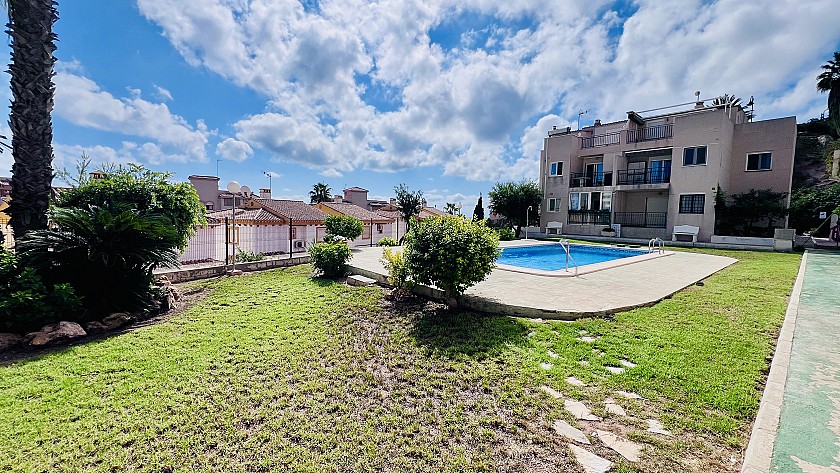 Välkommen till denna charmiga lägenhet med underbar utsikt över Medelhavet och det gemensamma poolområdet. Bostaden erbjuder 1 dubbelsovrum med inglasad balkong, 1 helkaklat badrum, ett ljust vardagsrum med semiöppen planlösning och fullt utrustat kök, samt en vacker inglasad terrass som även kan användas som ett andra sovrum.