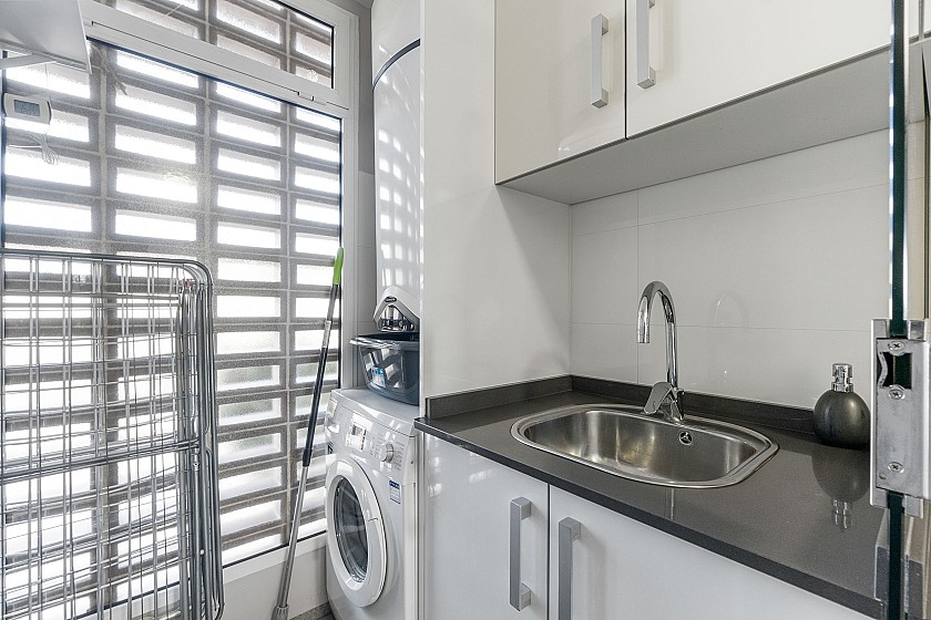 Lägenheten säljs delvis möblerad och med vitvaror. Den har integrerad luftkonditionering (varm/kall) i alla rum och elektrisk persienn i vardagsrummet.