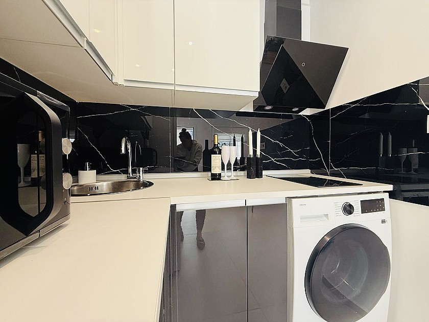 Ursprungligen byggd 1985 har denna bungalow totalrenoverats med högkvalitativa material, kvalite vitvaror från Samsung och moderna ytskikt. Det öppna köket är modernt renoverat och ger er en öppen yta mellan vardagsrum och kök. De två sovrummen har båda smarta sängar med inbyggd förvaring som maximerar utrymmet utan att kompromissa med komforten.