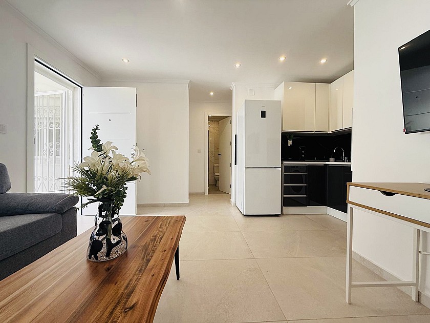 Välkomna till mysiga Torreta III och denna fina renoverade hörn markplan med stor terrass på ca, 33 kvm och närhet till alla tänkbara bekvämligheter.